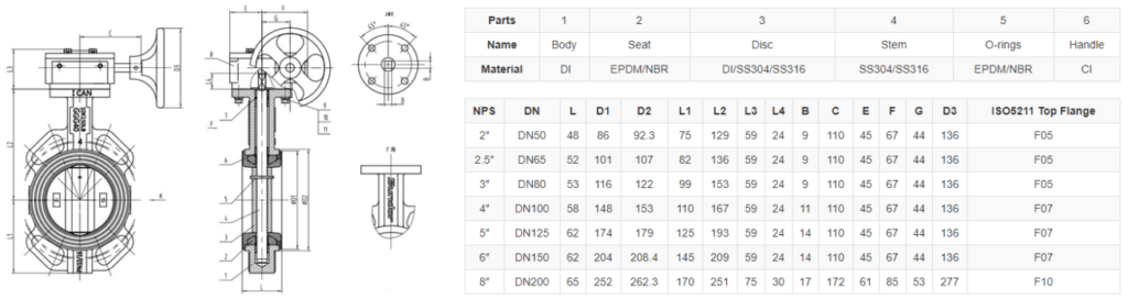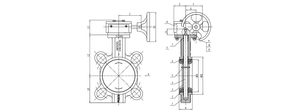Accurate positions can also be taken because a stopper bolt is installed in both the fully closed and fully opened positions. Additionally, the indicator located at the top of the gear box can be used to read the disc’s opening angle. Using the manual handle, “Open” is achieved by rotating counterclockwise, and “Close” by rotating clockwise.